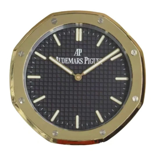 Designed with the signature octagonal bezel and textured dial, this 34 cm décor clock captures the bold aesthetic of the legendary Royal Oak in a striking gold and black finish.
