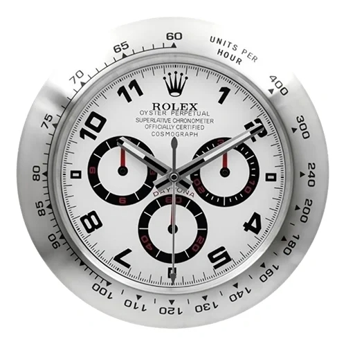 If you are looking for a Daytona wall clock with clean contrast, silent performance, and racing-inspired luxury character, this 34cm silver model is an excellent choice for sophisticated interiors.