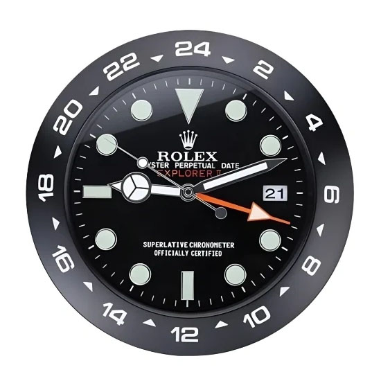 Inspired by the iconic Explorer II watch design, this wall clock captures the spirit of adventure, precision, and functional luxury—reimagined as a striking décor centerpiece.