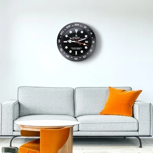 The deep black dial is paired with high-contrast hour markers and hands, creating excellent readability while maintaining a clean, powerful aesthetic. Subtle Rolex-inspired design elements—such as the bezel styling, dial layout, and luminous details—give this clock a premium, tool-watch character without being overstated.