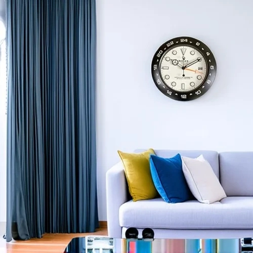 This wall clock is Rolex-inspired in design, reflecting the rugged yet elegant character associated with professional explorer watches. The high-contrast dial, oversized markers, and sporty proportions create a confident, tool-watch look that works beautifully in both modern and minimalist spaces.