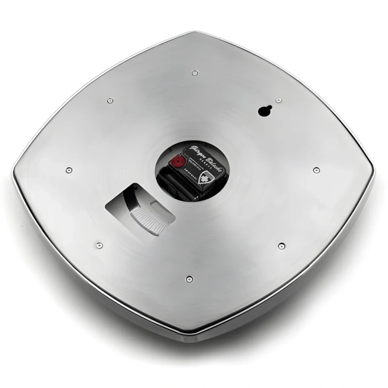 With its 34cm oversized dial, the Panerai Wall Clock creates a strong yet composed visual presence. The silver dial offers a clean, structured foundation, while the green accents introduce depth and calm contrast. This color combination delivers a more restrained and elegant interpretation compared to brighter accent versions, making it suitable for a wider range of interior styles.