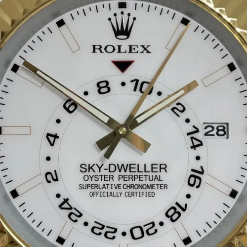 If you are looking for a Sky Dweller Wall Clock with refined color, silent performance, and Rolex-inspired luxury character, this 34cm gold and white model is an excellent choice for sophisticated interiors.