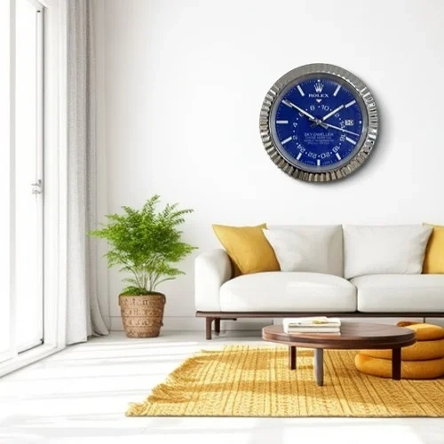 If you are looking for a Sky Dweller Wall Clock with cooler tones, silent performance, and Rolex-inspired luxury styling, this 34cm silver and blue model is an excellent choice for sophisticated interiors.