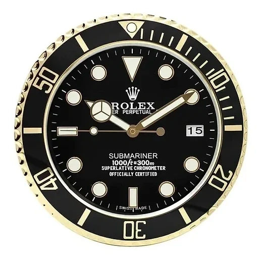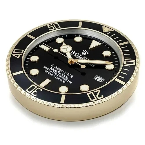If you are looking for a Submariner Wall Clock with richer contrast, silent performance, and Rolex-inspired dive-watch character, this 34cm black and gold model is an excellent choice for sophisticated interiors.